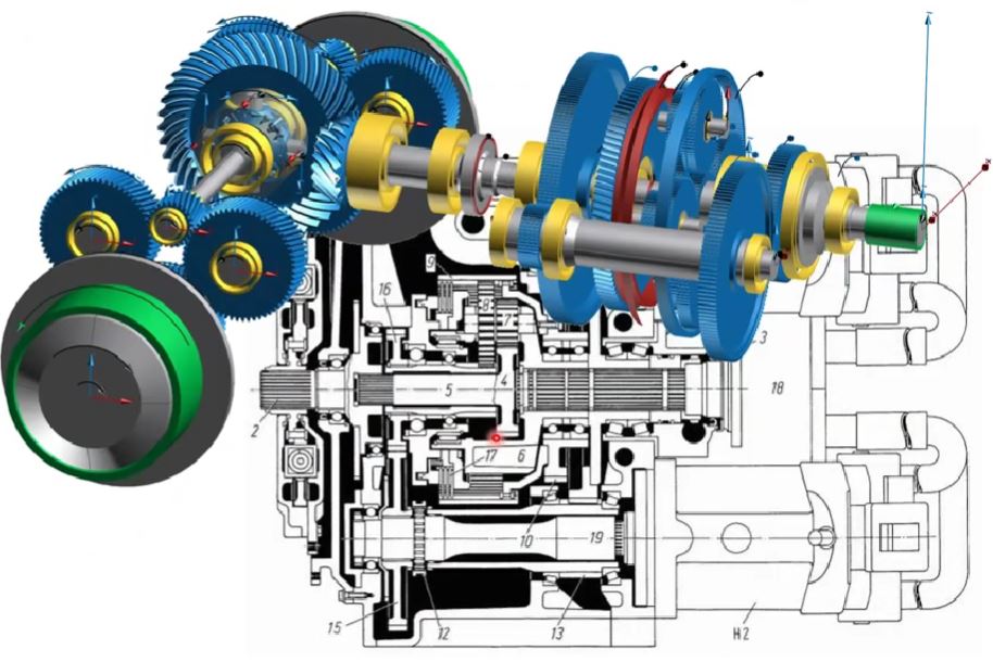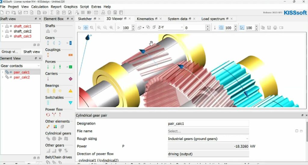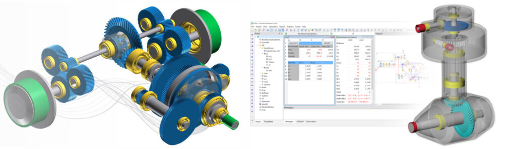 1) Зубчасті передачі. Розрахунок зубчастих передач проводиться для всіх основних їх типів, таких як циліндричні, конічні, черв’ячні, гіпоїдні та ін. Міцність розраховується на основі стандартів ISO, DIN, AGMA, VDI тощо, в т.ч. таких, які є чинними в Україні. Додатково пропонується величезна кількість рішень для визначення розмірів та оптимізації, а також реалізовано методи оцінки, що навіть виходять за рамки стандартів.
